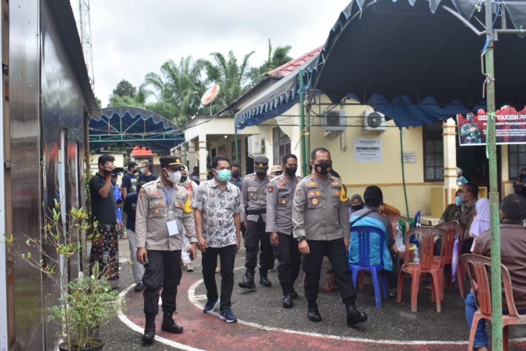 Memberikan dukungan kepada tenaga kesehatan, Bupati Balangan H. Abdul Hadi didampingi Kapolres Balangan AKBP Zaenal Arifin dan Kepala BPBD H. Rahmi mengecek pelaksanaan Vaksinasi di Aula Polres Balangan, Sabtu (02/10/2021).