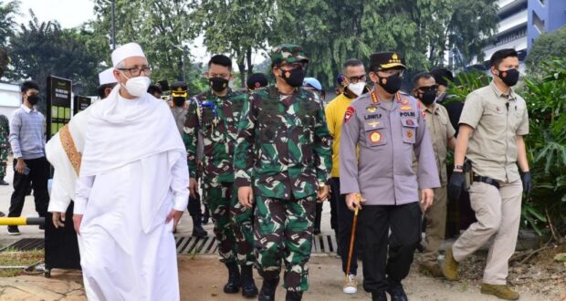 Jakarta (ANTARA) – Panglima TNI Marsekal TNI Hadi Tjahjanto bersama Kapolri Jenderal Listyo Sigit Prabowo meninjau lokasi vaksinasi massal di Cibis Park Jalan TB Simatupang, Jakarta Salatan, Selasa (6/7/2021).