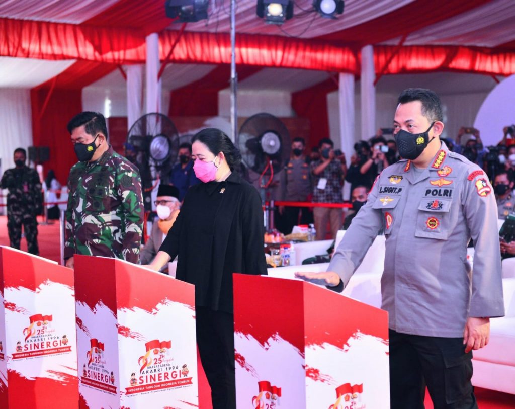 Sigit hadir bersama Ketua DPR Puan Maharani dan Panglima TNI Marsekal Hadi Tjahjanto. “Terus bekerja keras dalam rangka penanggulangan Covid-19, dan di satu sisi, bagaimana mendorong ekonomi nasional berjalan dan bertumbuh,” pesannya.