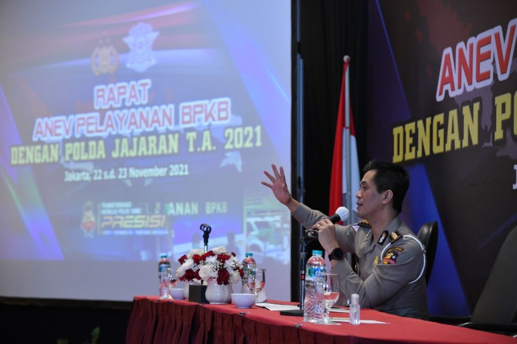 Jakarta – Direktorat Regident Korlantas Polri melakukan analisa dan evaluasi pelayanan BPKB bersama Polda Jajaran se-Indonesia. Kegiatan ini dalam rangka mendorong progresivitas pengembangan pelayanan BPKB berbasis digital.