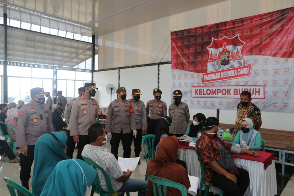 Adapun pelaksanaan Vaksinasi Merdeka Candi Polres Cilacap di Gedung Ballroom Sena Cafe dengan sasaran kelompok buruh yang ada di wilayah Kecamatan kroya sejumlah 1010 orang, dimana vaksin berasal dari Puskesmas Kroya 1 sejumlah 27 vial untuk 274 orang, Puskesmas 2 Kroya sejumlah 15 vial untuk 175 orang, Bhayangkara 26 vial untuk 272 orang, dan RSU Aghisna 30 vial untuk 289 orang dengan petugas vaksinator dari nakes masing-masing instansi di atas.
