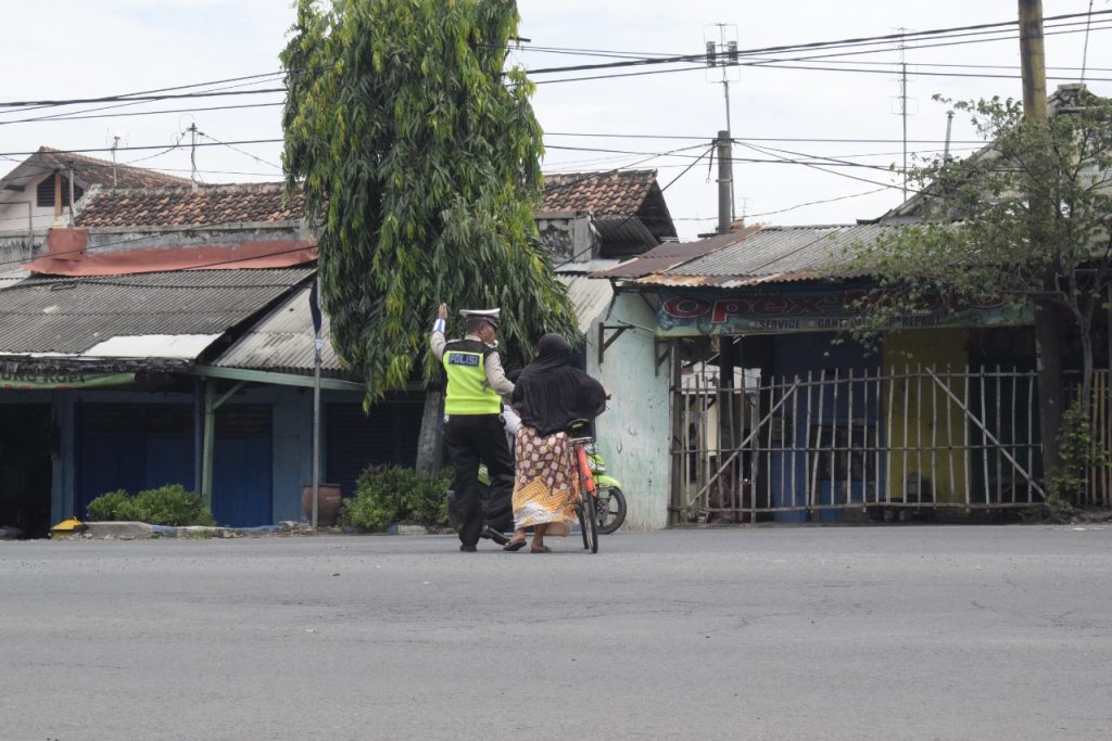Untuk meminimalisir terjadinya kecelakaan di jalan raya, anggota Sat Lantas Polres Pasuruan Kota turut membantu warga masyarakat yang hendak menyebrang di jalan Pantura tepatnya di Kecamatan Kraton, Kamis (28/10/2021).